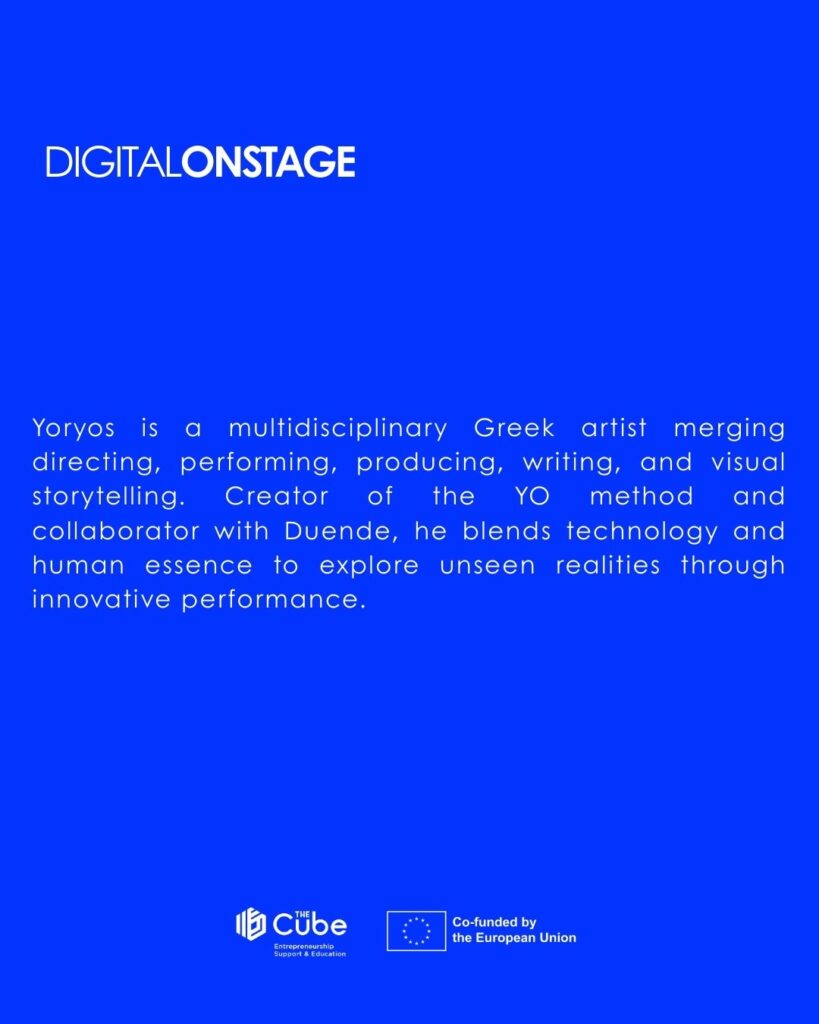 Ο Γιώργος είναι ένας πολυδιάστατος Έλληνας καλλιτέχνης που συνδυάζει τη σκηνοθεσία, την ερμηνεία, την παραγωγή, τη συγγραφή και την οπτική αφήγηση. Δημιουργός της μεθόδου YO και συνεργάτης του Duende, συνδυάζει την τεχνολογία και την ανθρώπινη ουσία για να εξερευνήσει αόρατες πραγματικότητες μέσω καινοτόμων παραστάσεων.